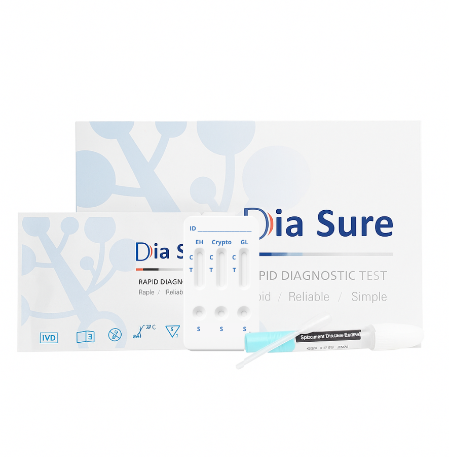Высокочувствительный иммунохроматографический экспресс-тест in vitro, предназначенный для качественного выявления Entamoeba histolytica, Cryptosporidium spp. и Giardia lamblia в образцах кала человека.